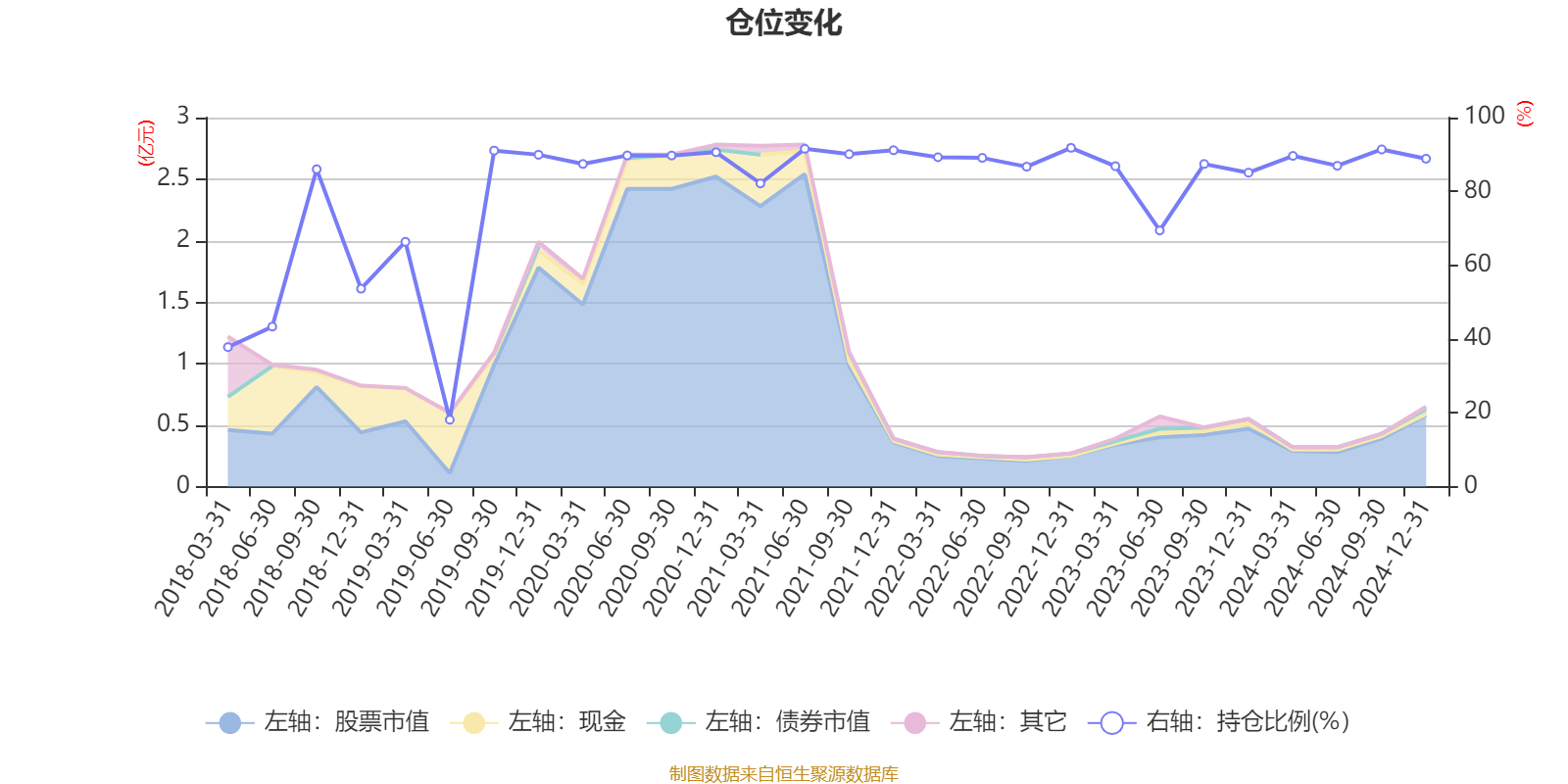 据定期报告数据统计,近三年平均股票仓位为86.86%,同类平均为84.66%。2022年末基金达到91.8%的最高仓位,2019年上半年末最低,为18.11%。